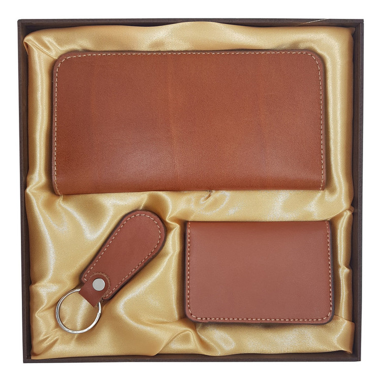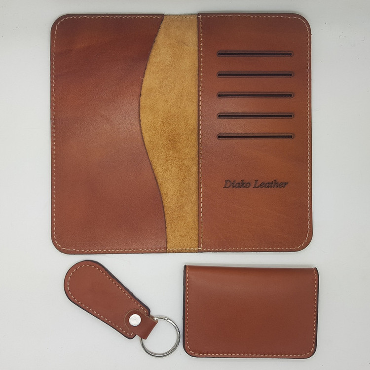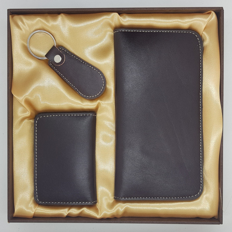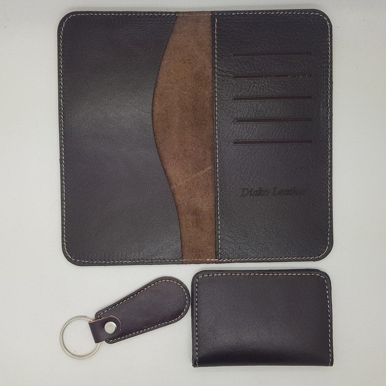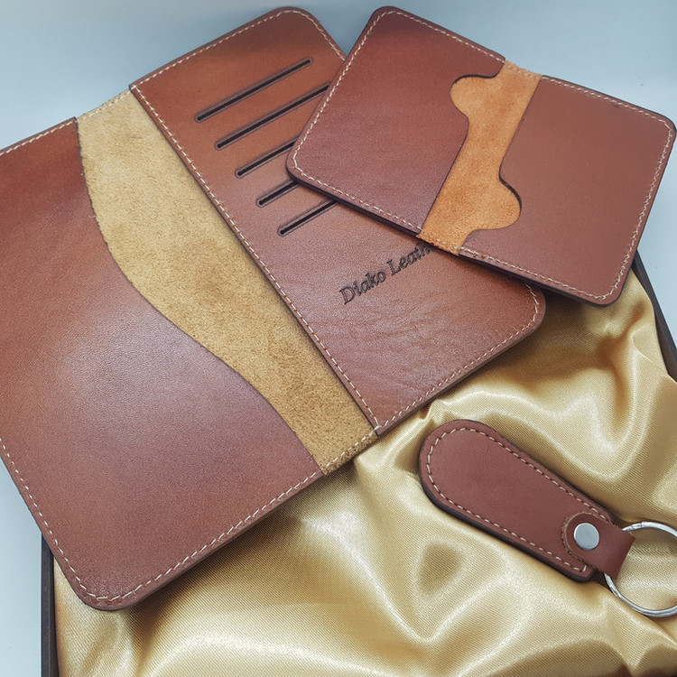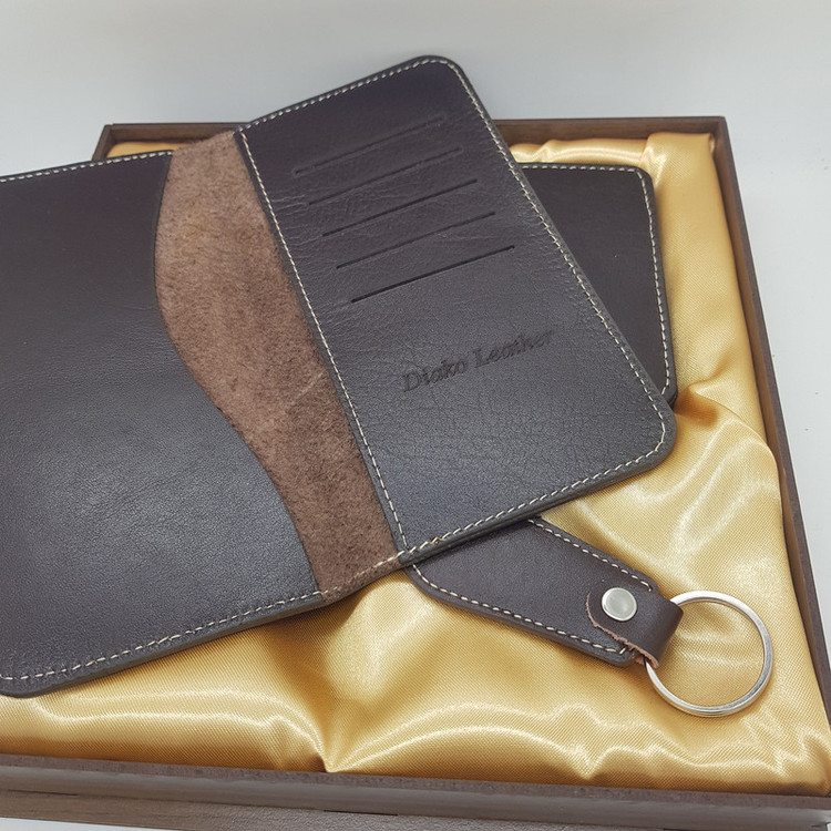 ست هدیه دیاکو مجموعه ای از محصولات چرم طبیعی میباشد که کاملا به صورت ماهرانه تولید شده است و در بسته بندی شیک و مناسب هدیه قرار داده شده است. این بسته شامل 3 تیکه: کیف پول ، کیف جاکارتی و جاکلیدی میباشد