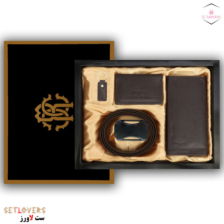 ست چهارتیکه شامل کیف بلند، کمربند، جاکارتی و جاسوییچی می شود. این ست تولید کارخانه ست لاورز بوده و در سه رنگ عسلی، قهوه ای تیره و مشکی به فروش می رسد. جنس این ست از چرم صنعتی درجه یک بوده که به هیچ عنوان پوسته پوسته نمی شود. تمام برش های کیف با دستگاه لیزر انجام شده است. دوخت کیف و جاکارتی با ظرافت بسیاری انجام شده و از نخ و یراق درجه یک در تولید این ست استفاده کرده ایم. باکس ست هدیه را مشابه برند اصلی تولید کرده ایم. با خرید این ست هدیه مردانه، دیگر نیاز به خرید باکس کادو جداگانه ندارید. برند روبرتوکاولی با دستگاه لیزر روی کیف و جاسوییچی حکاکی شده است. همچنین سگک این محصول هم با برند عرضه می شود تا زیبایی این ست دو چندان شود. این ست هدیه با قیمت بسیار مناسب عرضه شده و کادویی کاربردی برای مناسبت های مختلف محسوب می شود. ست لاورز تولید کننده های ست های چرم طبیعی و صنعتی است که فقط محصولات تولید خودش را به فروش می رساند.